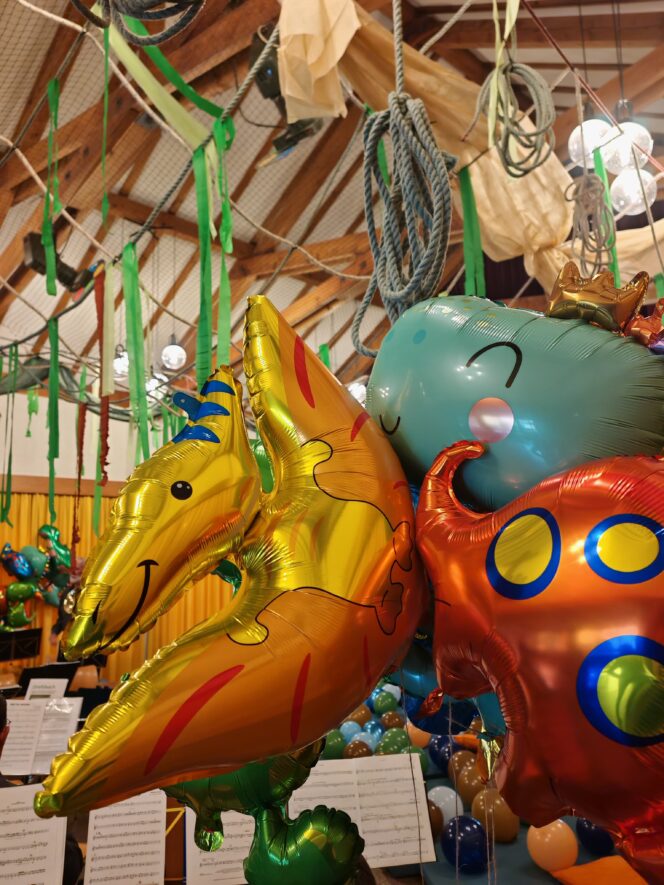 Ein Konzert wie ein Tauchgang: «Paul Pauke und die Piratenbande» begeistert Familien Am Sonntagnachmittag, 10. November, verwandelte sich das Kirchgemeindehaus Kirchenthurnen in eine faszinierende Unterwasserwelt. Zwischen bunten Ballons, Fischernetzen, Seegras und Schiffstauen fühlten sich die Besuchenden wie auf dem Meeresgrund – die perfekte Kulisse für das Familienkonzert «Paul Pauke und die Piratenbande». Organisiert und selbstgeschrieben von der Musikgesellschaft Mühlethurnen, versprach das Konzert ein aussergewöhnliches Abenteuer für Gross und Klein – und es hielt, was es versprach. Das Besondere: Die Aufführung fand mitten im Raum statt, umgeben von Zuschauenden. Sie waren hautnah am Geschehen und erlebten das Konzert wie einen Tauchgang. Schon vor Beginn deutete der Andrang darauf hin, dass die Geschichte des musizierenden Kraken Paul Pauke und des schatzsuchenden Piraten Blauhake die Familien in ihren Bann zog. Das Kirchgemeindehaus platzte aus allen Nähten.