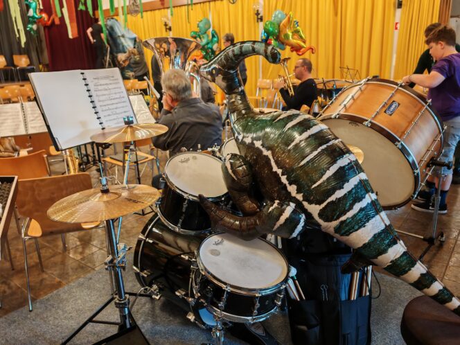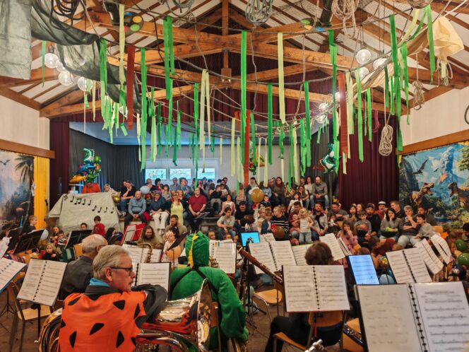 Was für ein Spektakel! Beim Familienkonzert der Musikgesellschaft Mühlethurnen wurde das Kirchgemeindehaus in Kirchenthurnen zur Bühne für ein urzeitliches Abenteuer, welche kleine und grosse Besuchende gleichermassen verzauberte.
