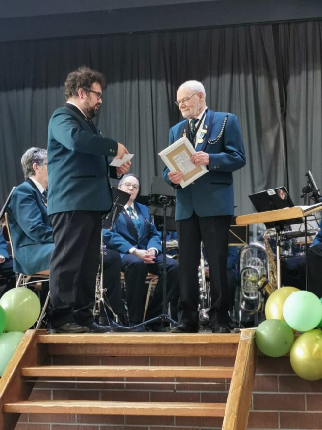 Am Samstag, 28. Februar, und Sonntag, 1. März 2026, durfte die MGM ihr diesjähriges Frühjahrskonzert in Burgistein durchführen. Gemeinsam mit dem Jodlerchörli Gürbegruess gestalteten wir zwei abwechslungsreiche und stimmungsvolle Konzertabende vor zahlreichem Publikum. Das musikalische Programm bot eine vielseitige Mischung aus moderner Blasmusik, bekannten Melodien und traditionellen Klängen, welche durch die Jodlervorträge auf wunderbare Weise ergänzt wurden. Ein besonderer Höhepunkt des Konzertwochenendes war die Ehrung unseres langjährigen Mitglieds Peter Wyder. Für seine beeindruckenden 60 Jahre aktives Musizieren wurde er vom Bernischen Kantonal-Musikverband (BKMV) zum CISM-Veteranen ernannt. Am Sonntag durfte Christian Amacher, Vorstandsmitglied des BKMV, Peter Wyder im feierlichen Rahmen mit Medaille und Urkunde auszeichnen und würdigte ihn mit persönlichen und berührenden Worten für sein langjähriges Engagement. Diese Ehrung wurde vom Publikum mit grossem Applaus begleitet und stellte einen sehr bewegenden Moment dar. Die Musikgesellschaft Mühlethurnen gratuliert Peter Wyder herzlich zu dieser aussergewöhnlichen Auszeichnung und dankt ihm für seine langjährige Treue und sein grosses Engagement. Seit seinem Eintritt 1966 prägte er den Verein in zahlreichen Funktionen, unter anderem als Dirigent, Vorstandsmitglied sowie langjähriges Mitglied der Musikkommission, und wirkte bei vielen wichtigen Meilensteinen aktiv mit. Sein Wirken wurde bereits mehrfach gewürdigt. Mit der Ernennung zum CISM-Veteranen erreicht sein musikalisches Lebenswerk nun einen besonderen Höhepunkt. Diese Auszeichnung erhalten Musiker, die während mindestens 60 Jahren aktiv musiziert haben. Wir sind stolz, einen so verdienten und geschätzten Kameraden in unseren Reihen zu haben und freuen uns auf viele weitere gemeinsame musikalische Momente.